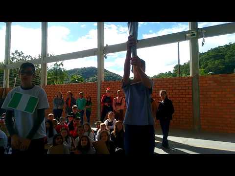 O seguinte momento é um dos mais importantes do evento. O acendimento da tocha, que é o elo entre os Jogos da Antiguidade e os Jogos da Era Moderna. O fogo sagrado, tido como elemento purificador, anuncia o começo dos Jogos e convoca o mundo a celebrá-los em paz. A tocha será acesa pelo aluno Gustavo Eidt, do 6º ano 1, com cooperação da turma do 8º ano 2, e transportada até a pira, onde será apagada na cerimônia de encerramento.