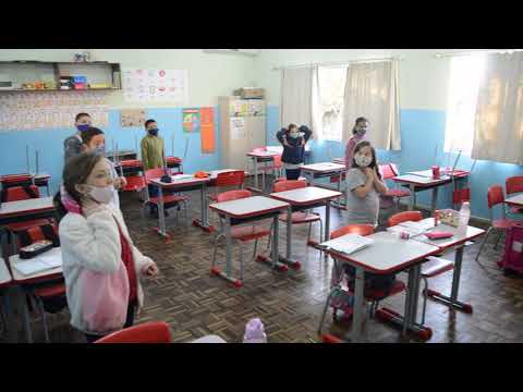 No início da aula de Alemão, os alunos do 4º ano 4 cantaram canções referentes à boa tarde, aos números, à família e às partes do corpo para recapitular os temas estudados em sala. A metodologia utilizada para reforçar o tema estudado em cada aula foi de forma lúdica. Já referente à atividade prática na oralidade na língua alemã, os alunos fizeram uma encenação teatral. Os alunos simularam dores corporais e formularam frases completas referentes às dores. (Lehrerin Therese Mager)